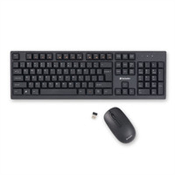 USB Type A Wireless Bluetooth 2.40 GHz Keyboard - USB Type A Wireless Mouse - Optical - 1000 dpi - 3 Button - Multimedia Hot Key(s) - Symmetrical - AA, AAA - Compatible with Windows, Mac General Information Manufacturer: Verbatim America, LLC Manufacturer Part Number: 70724 Brand Name: Verbatim Product Name: Wireless Keyboard And Mouse Marketing Information: Cut the cord with this Wireless Keyboard and Mouse. This combo offers 2.4Ghz wireless communication for no delays in what you type and what you see on-screen. Included nano receiver is small enough to plug in once and stay connected. Hot keys on the keyboard provide instant access to media controls, putting your music at your fingertips. Adjustable tilt legs offer added comfort and flexibility. Mouse features 1000 dpi for higher precision and accuracy while clicking - and an ambidextrous design for right-hand or left-hand users. Keyboard and mouse are compatible with Windows and Mac platforms. >More from the Manufacturer Product Type: Keyboard & Mouse Keyboard/Keypad Keyboard/Keypad Type: Keyboard Keyboard/Keypad Connectivity Technology: Wireless Keyboard/Keypad Wireless Technology: Bluetooth Keyboard/Keypad Wireless Operating Frequency: 2.40 GHz Keyboard/Keypad Features: Adjustable Tilt Hot Keys: Multimedia Pointing Device Pointing Device Type: Mouse Pointing Device Connectivity Technology: Wireless Movement Detection: Optical Movement Resolution (dpi): 1000 Number of Total Buttons: 3 Ergonomic Fit: Symmetrical Interfaces/Ports Keyboard/Keypad Host Interface: USB Type A Pointing Device Host Interface: USB Type A Battery Information Battery Included: Yes Battery Size Supported: AA Battery Size Supported: AAA Physical Characteristics Keyboard/Keypad Height: 1.12" Keyboard/Keypad Width: 17.60" Keyboard/Keypad Depth: 5.45" Miscellaneous Package Contents: Wireless Keyboard And Mouse Nano Receiver 1 x AAA Battery (Keyboard) 1 x AA Battery (Mouse) Operating System Compatibility: Linux 2.6 Operating System Compatibility: Mac OS X 10.4 Operating System Compatibility: Windows 7 Operating System Compatibility: Windows Vista Operating System Compatibility: Windows XP Country of Origin: China Platform Supported: Mac Platform Supported: Windows Warranty Limited Warranty: 1 Year