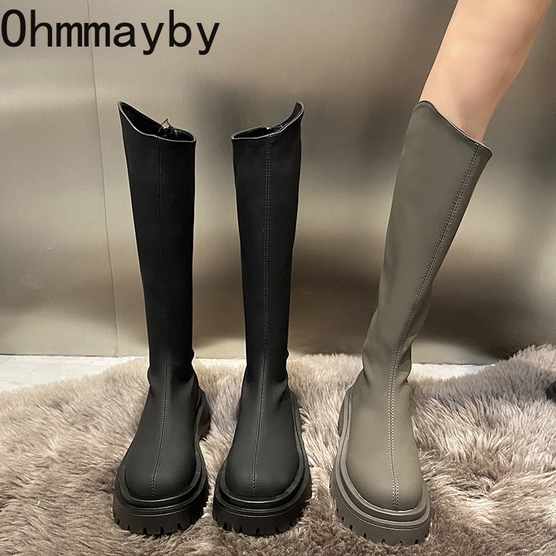 Winter Woman Thigh High Boots Fashion Back Zippers Long Knight Booties