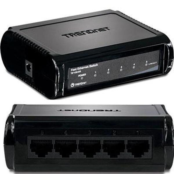 TRENDnet 5-Port Unmanaged 10/100 Mbps GREENnet Ethernet Desktop Plastic Housing Switch; 5 x 10/100 Mbps Ports; 1Gbps Switching Capacity; TE100-S5
