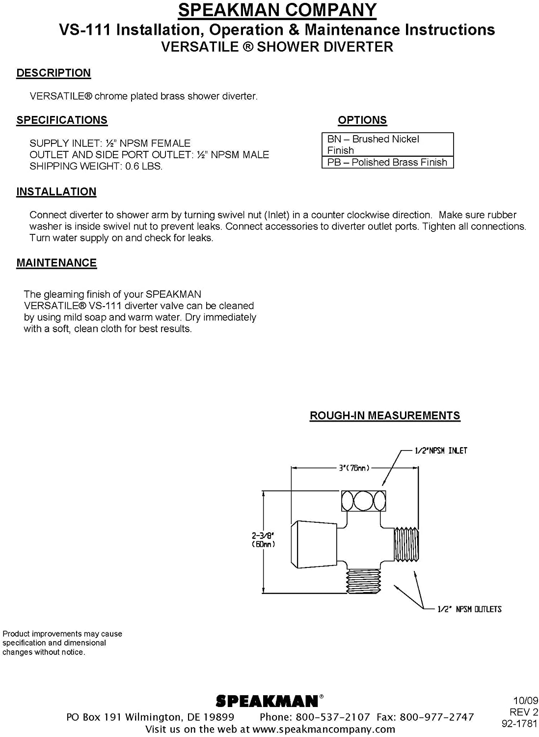 • Chrome plated shower diverter