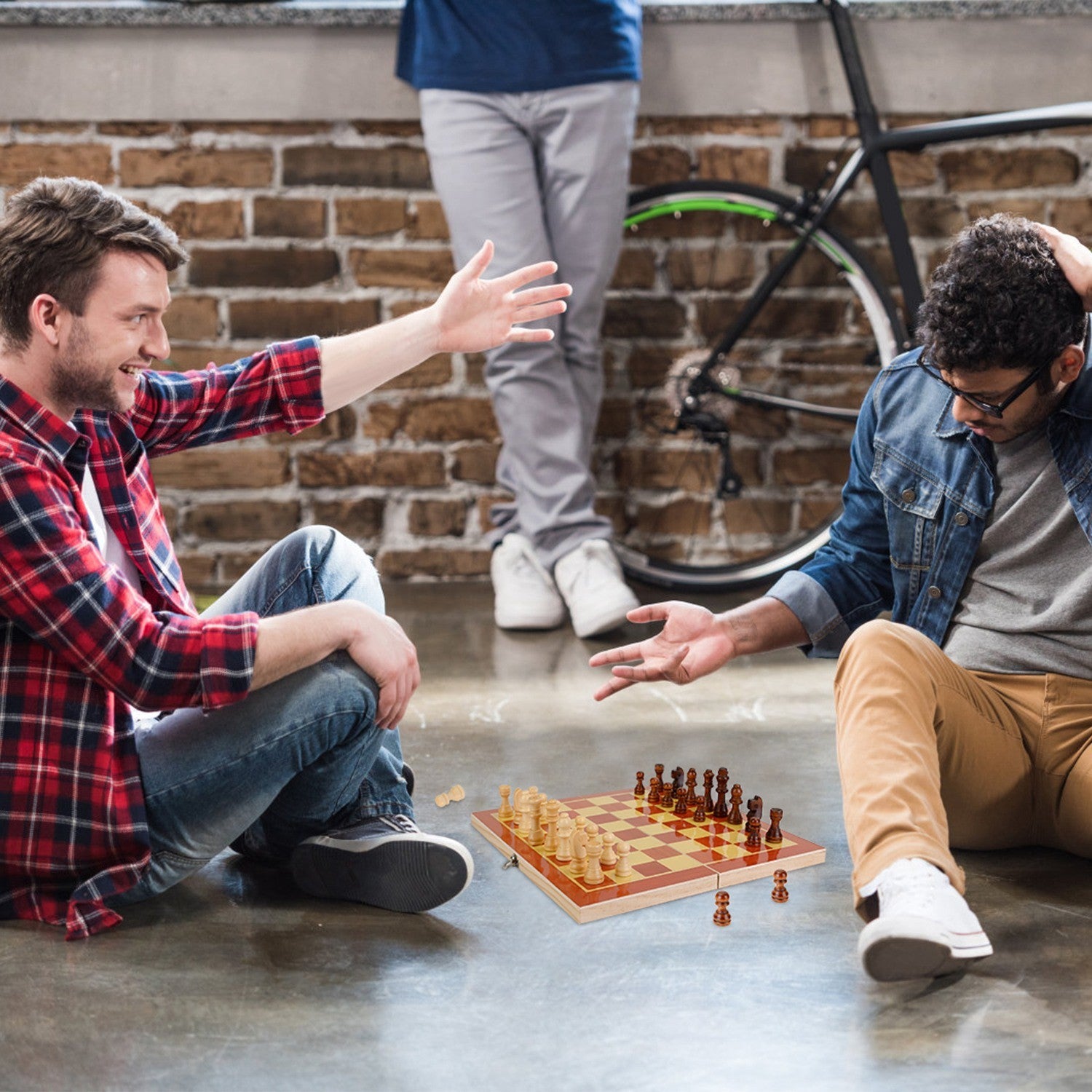 Highlights The chessboard can be folded in half as a box Smooth 11.3x11.3in chess board surface Suitable for 6+ years old children and adults to play with fun A good educational gift for children and also a good game to deepen relationship between family or friends. Perfect gift and play anytime anywhere Details *Features*: *Foldable & Portable*:The chessboard can be folded in half as a box to store all chess pieces with size of 11.3x5.63x1.1in; lightweight and portable for convenient carrying. Easy to put in your luggage or bag.*11.3x11.3in Smooth Chessboard*:With fine workmanship and unique technology; the chess piece and 11.3x11.3in chess board are smooth and even; ensuring the optimal touch comfort while playing chess.*Perfect Gift*:Suitable for 6+years old children and adults to play with fun. Could be a useful tool to enlighten your kids and stimulate their intelligence with joy and interest!A good educational gift for children and also a good game to deepen relationship between family or friends.*Play Anywhere Anytime*:With the compact size; ideal to play on the train; at the park; in the office; at beach; at school and anywhere; perfect for travelling. Simply enjoy the game on the go!*Sturdy & Durable*:Handmade with high quality wooden material; the chessboard and chess pieces are delicate and resistant to drop and wear; can be used for a long time. *Specifications*: ​ Product Type: Folding Board Game SetColor: WoodenMaterial: WoodFit For People: 6+ Years OldExtended Chess Board Size: 11.3x11.3inItem Size(Box): 28.6x14.3x2.8cm/11.3x5.63x1.1inItem Weight: 306g/0.67lbsPackage Size: 30*17.5*3.5cm/11.8*6.9*1.4inPackage Weight: 358g/0.8lbs *Package Lists*: 1 x Folding Wooden Chess Set