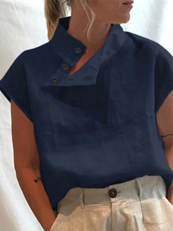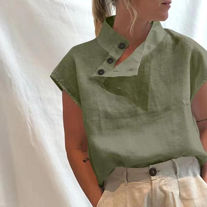 Stylish Blouses Summer Women Cotton Linen Short Sleeve Buttons Solid Shirts Casual Loose Tunic Top Light Thin Blusas