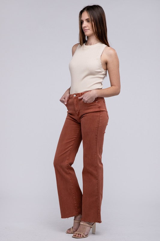 Acid Washed Frayed Cutoff Hem Straight Wide Pants